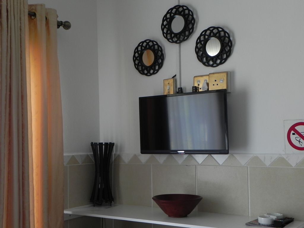 This self catering unit is a one bedroom apartment with a double bed in the main room and a single couch bed (for a child) in the living room area.